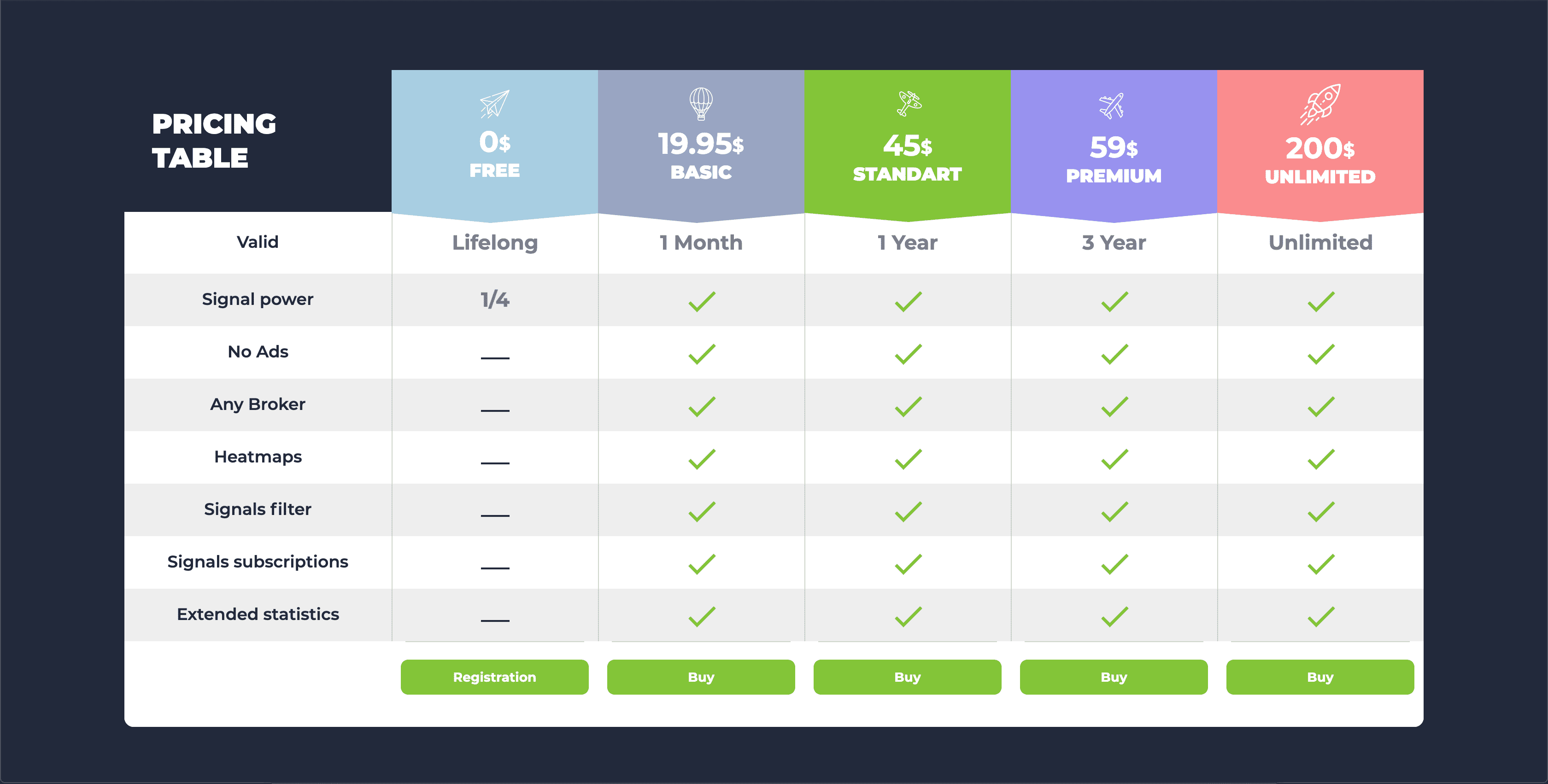 Power - Signal power. The percentage of profitable tradesbased on the current indicator data.